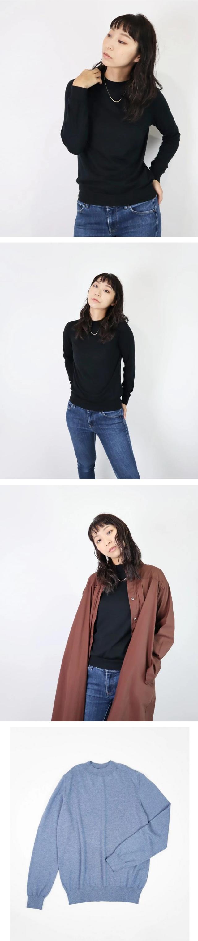 編地は16ゲージの天竺編みを採用しています。薄手で光沢感があり上品な印象に仕上げました。