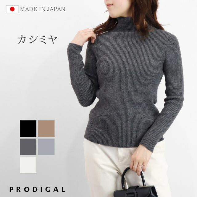 PRODIGAL カシミヤ リブニット タートルネック 長袖 秋 冬 レディース 日本製 M L セーター トップス きれいめ 五泉ニット WGストレッチカシミヤリブタートル