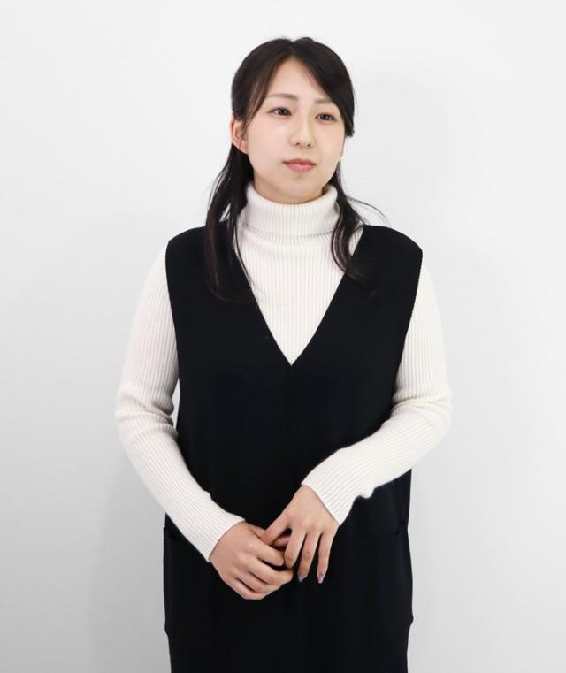 ホールガーメントで編み立てているので、縫い目がなく見た目がすっきりとしています。カットロスが無いサスティナブルな作りのニットです。