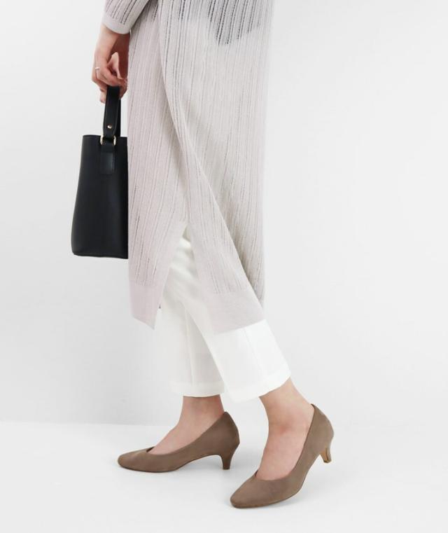 ボタンレスのデザインと、すとんと落ちるIラインシルエットですっきりとした印象に。ハリのある素材感は体のラインを拾わないので体型カバー効果も期待できます。