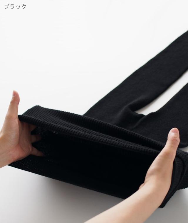 お腹周りをあたためてくれるだけでなく、レギンスとしてスカートやワイドパンツに合わせて使えます。重ね着をしても着ぶくれしにくいよう、薄手仕様となっています。