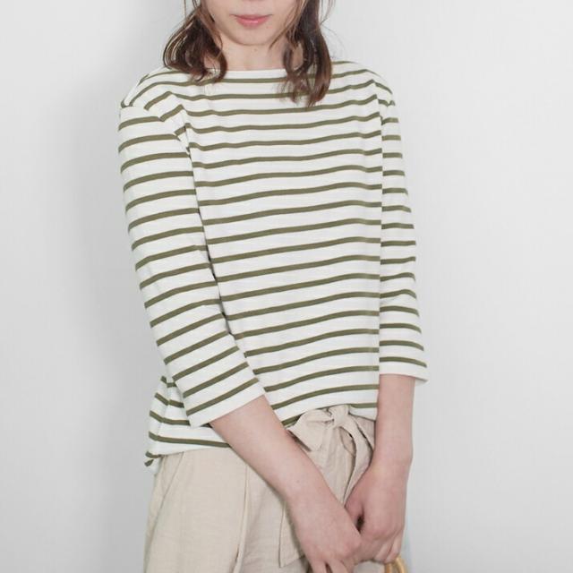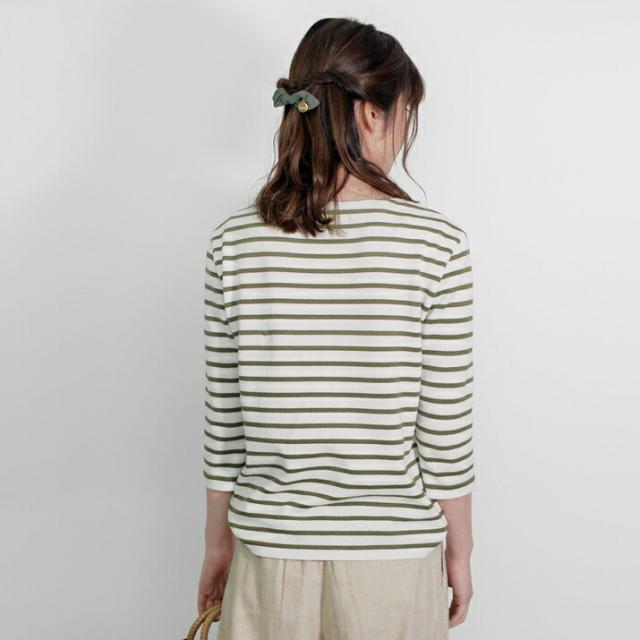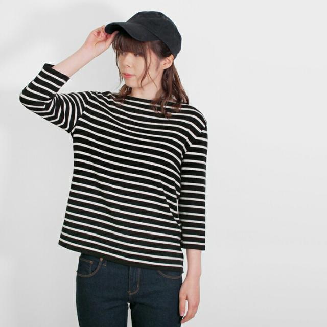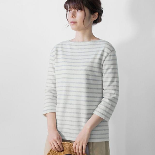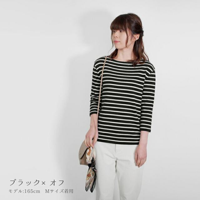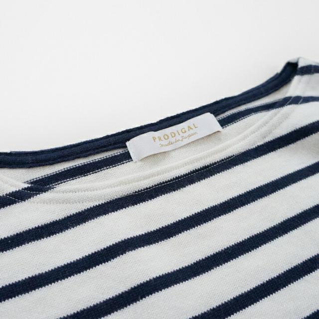 PRODIGAL ボーダー 七分袖 春 ニット レディース 日本製 M L 春夏 ボーダー カットソー ボートネック シンプル 綿 カシミア 五泉ニット コットンカシミヤボーダーニット七分袖