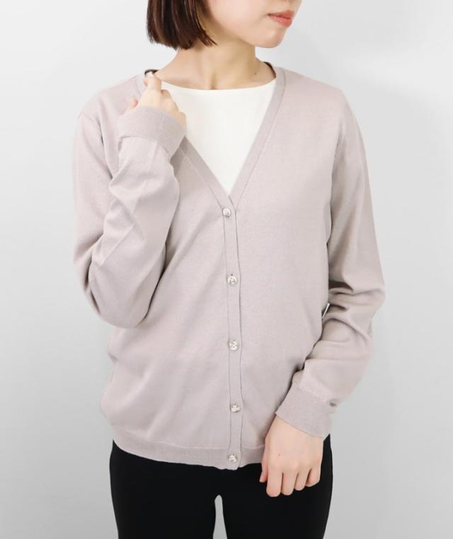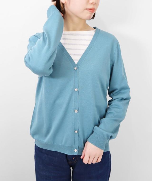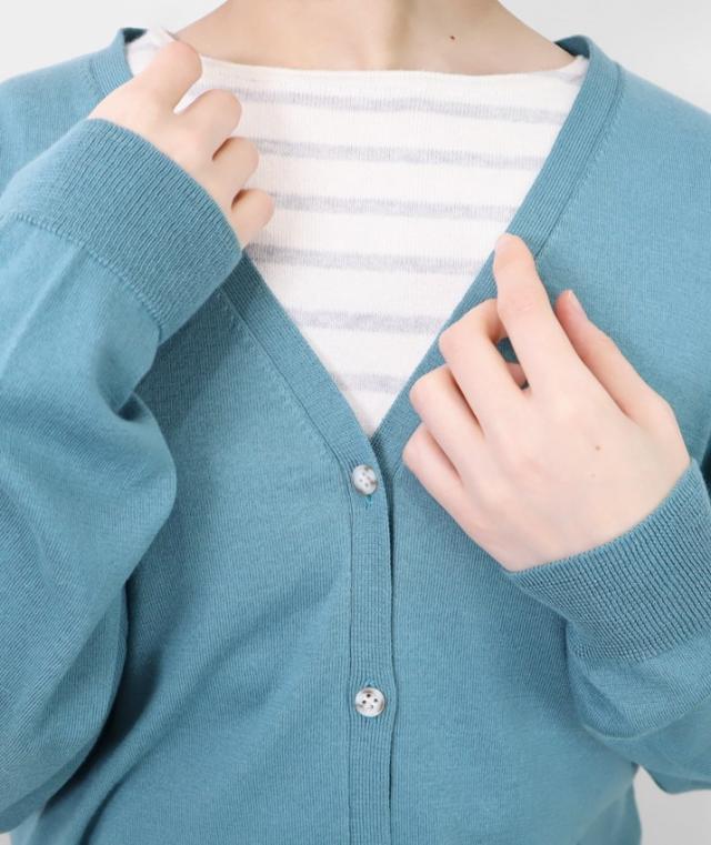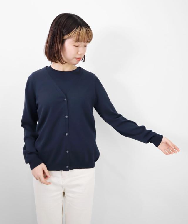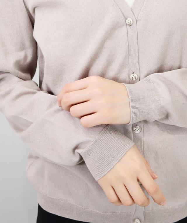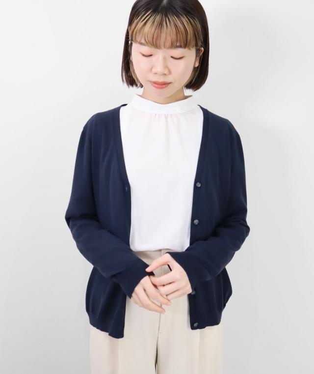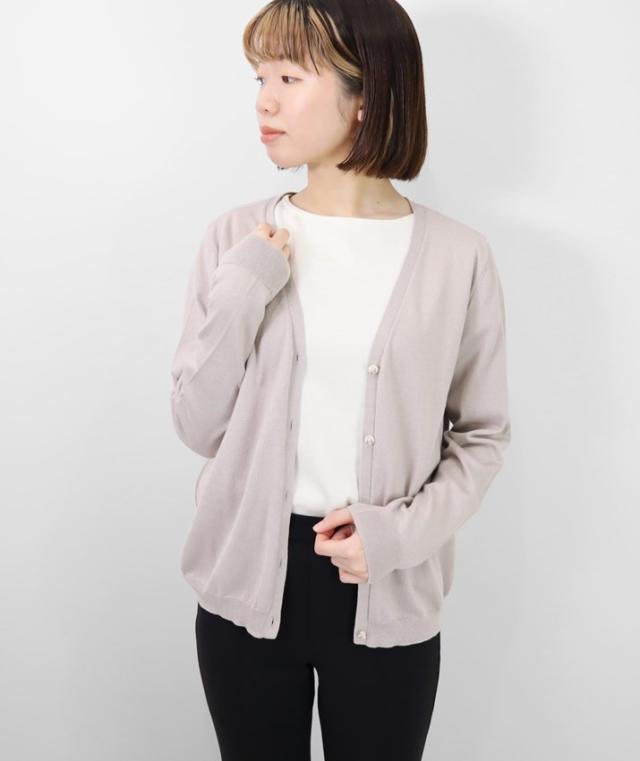 さらりと柔らかい肌触りのVネックカーディガンです。