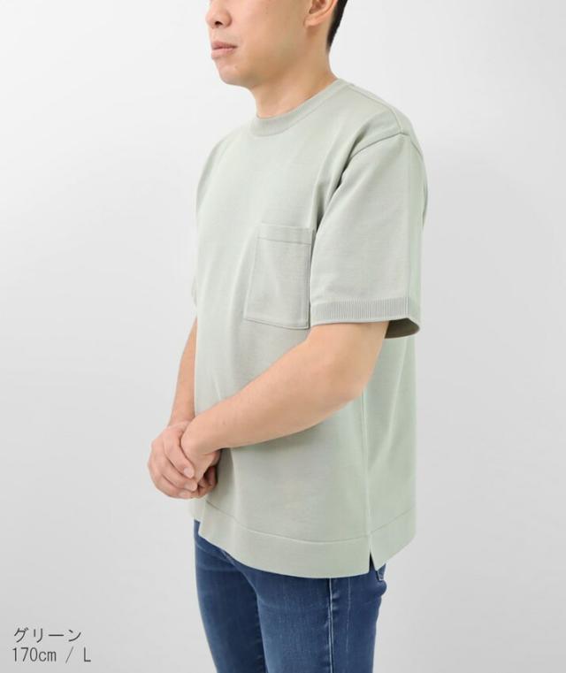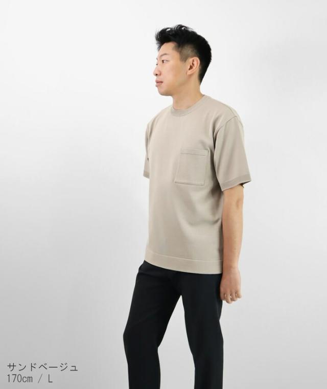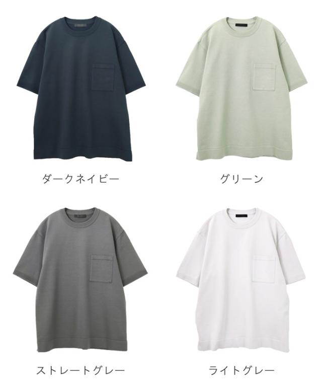 PRODIGAL サマーニット メンズ 半袖 ニット tシャツ 日本製 M L ポケット 夏 クルーネック ビッグシルエット 無地 シンプル 五泉ニット ポケット付きニットTシャツ