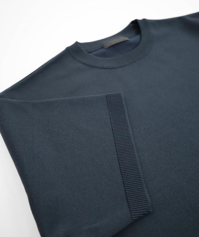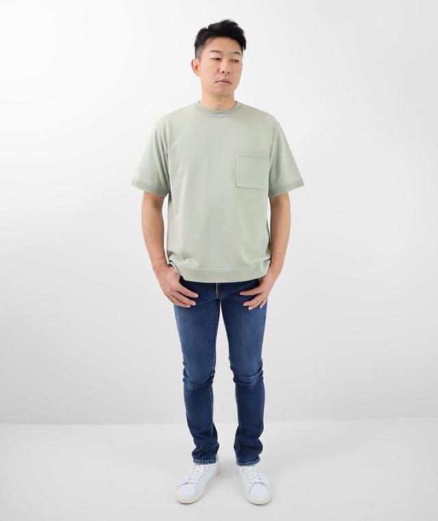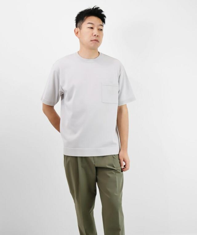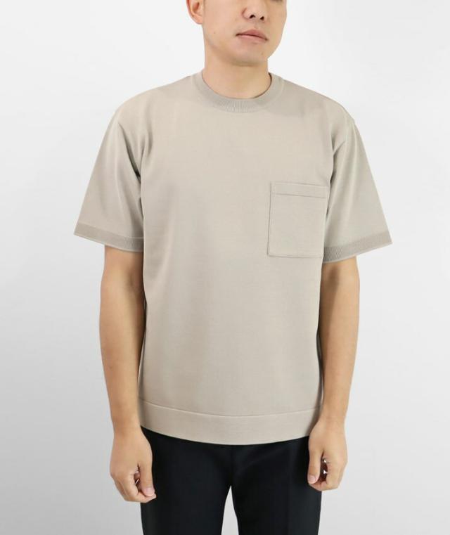 素材とディテールにこだわったこのニットTシャツなら、夏場に多いTシャツメインのスタイリングがワンランク上の着こなしに変わります。