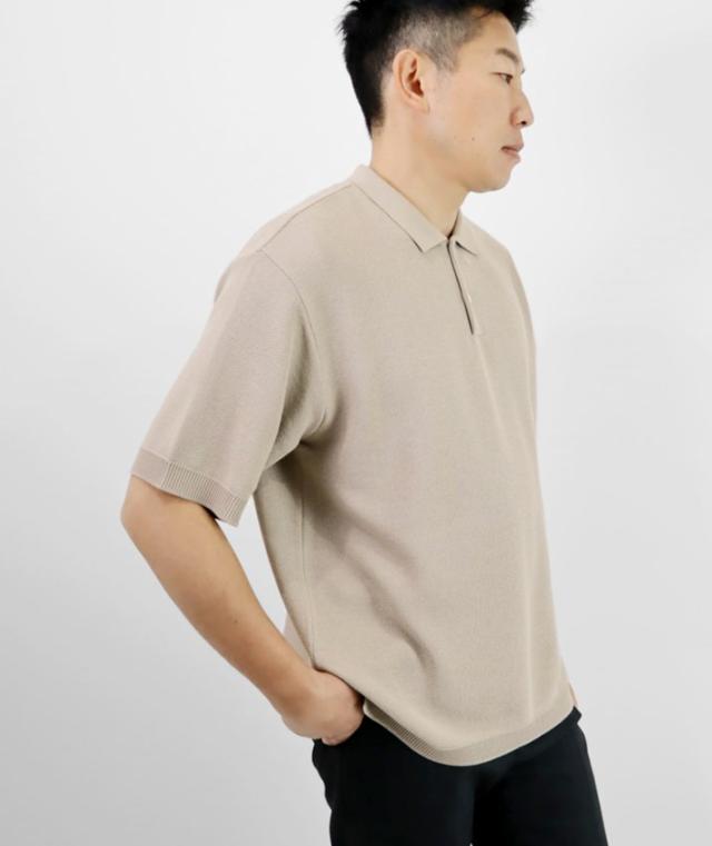 やわらかさが心地いいニットのポロシャツです。ゆったりとしたシルエットにやわらかいニット。
