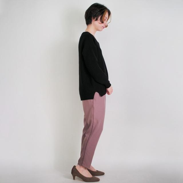 しっかりとした厚みのあるローゲージニットでボリューム感がありますが、ウール素材のものと比べて軽い着心地です。