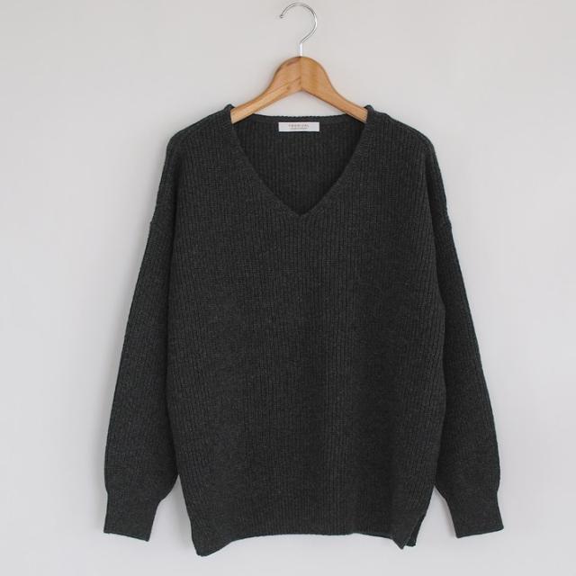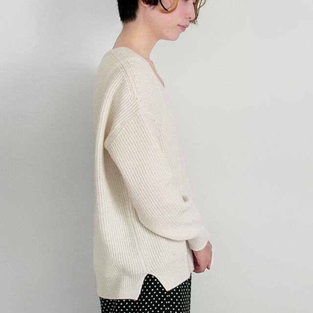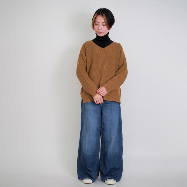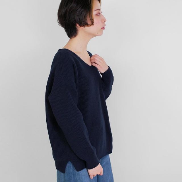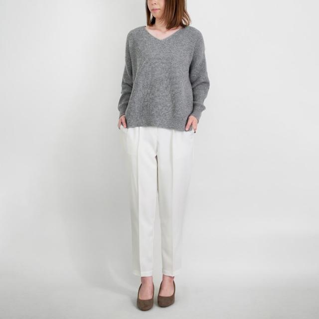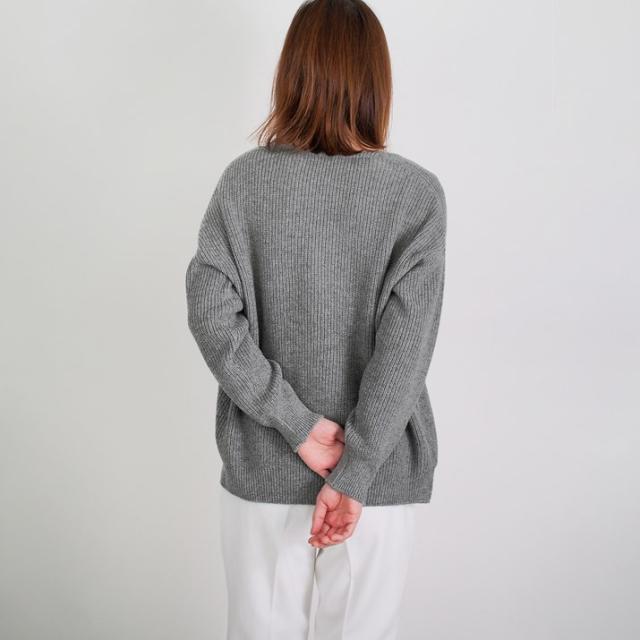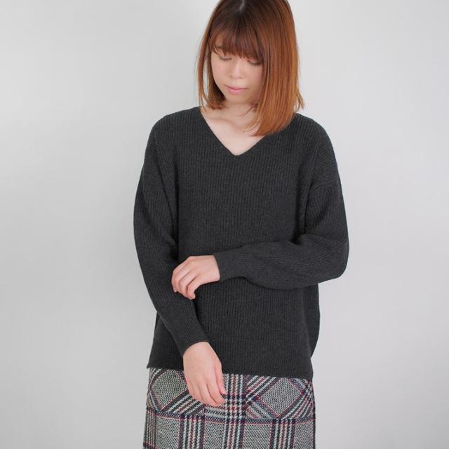 カシミヤ100%素材を使用した、軽くてあったかい畦編みのVネックセーターです。