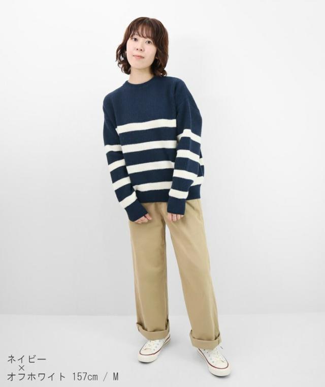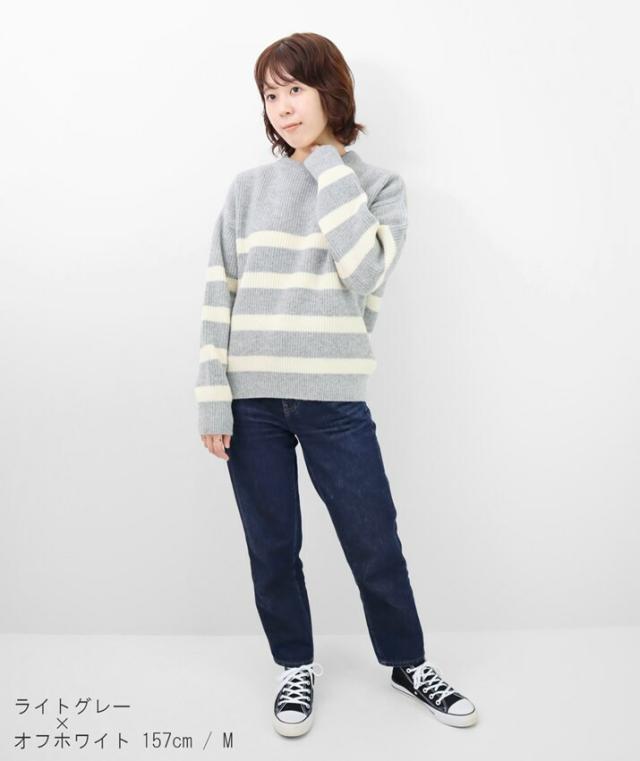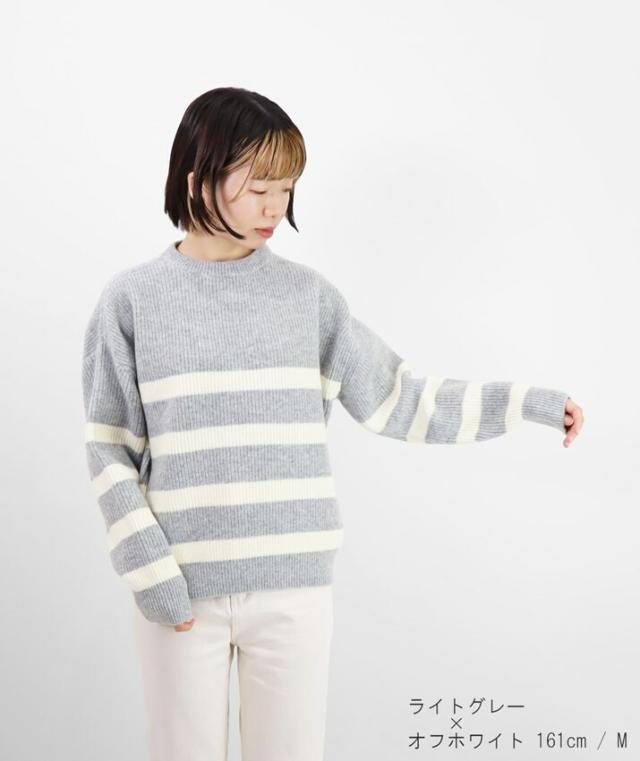 ベーシックなパネルボーダーニットはきれいめにもカジュアルにも合わせやすく、デイリーユースにとっても便利です。