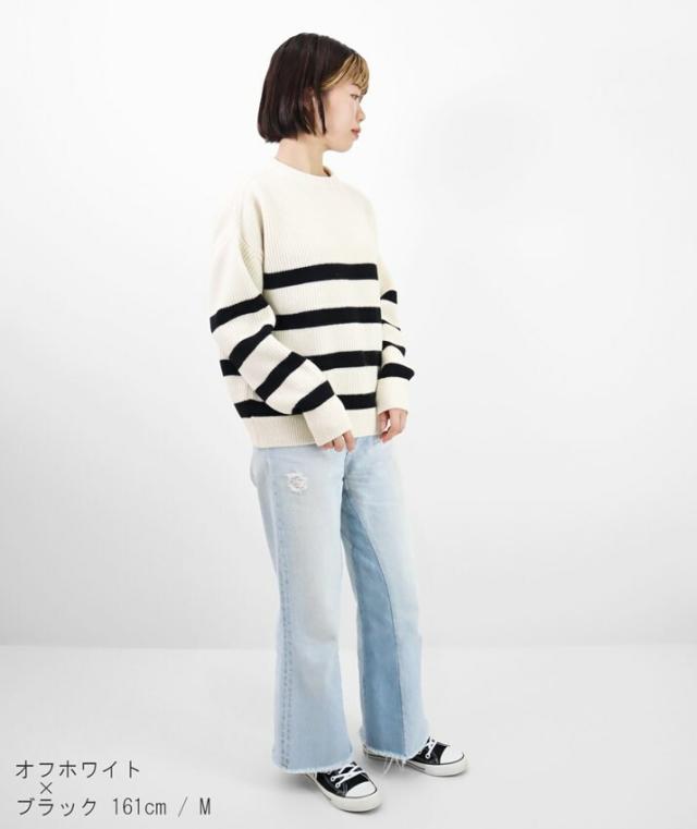プロディガル ボーダー セーター 秋冬 長袖 丸首 ゆったり 毛混 カシミア トップス プルオーバー