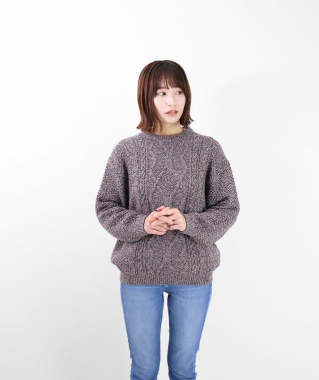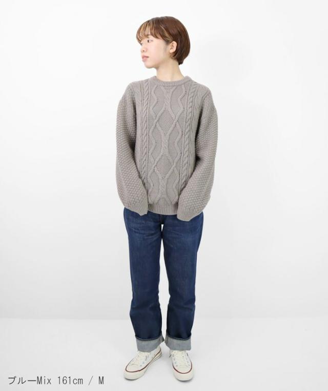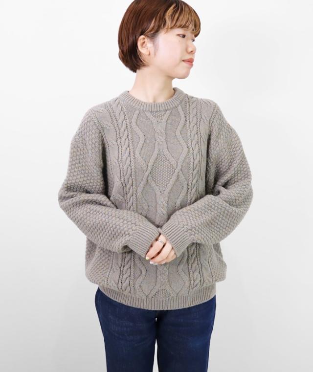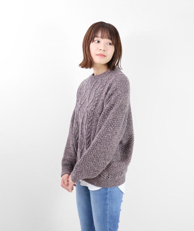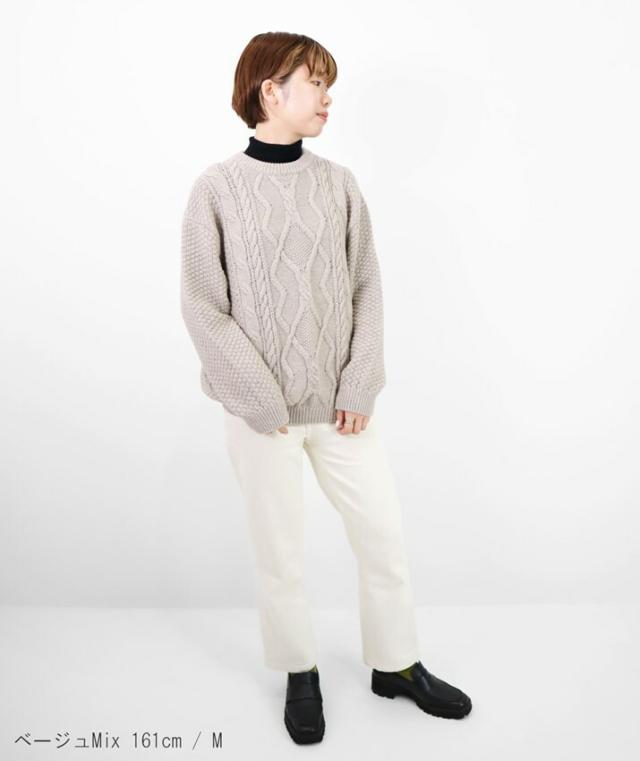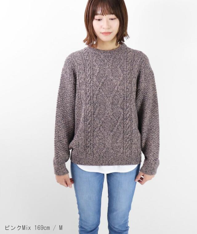 高品質 国産 毛混 ウール アクリル 撚り杢 杢糸 丸首 長袖 ケーブル ケーブルニット ケーブル柄 縄柄 軽い 暖かい あたたかい オーバーサイズ 体型カバー カジュアル ほっこり ざっくり ベーシック かわいい 可愛い おしゃれ お洒落 秋冬ファッション 秋冬アイテム 秋冬物 冬物