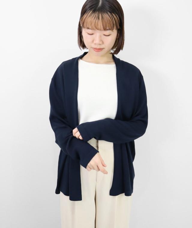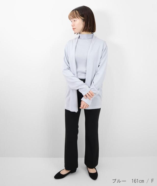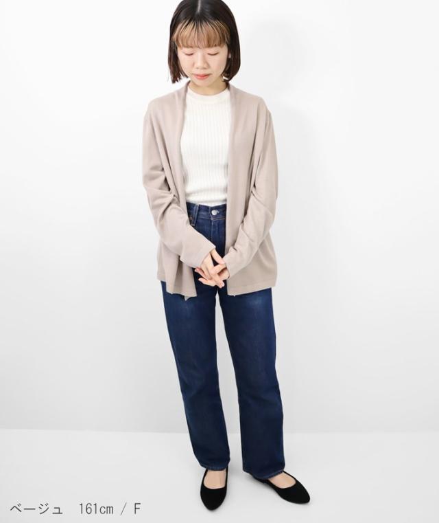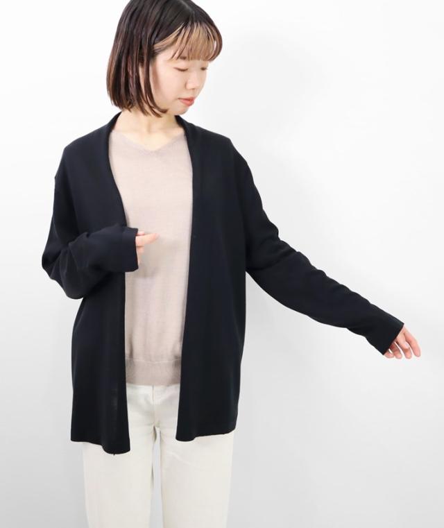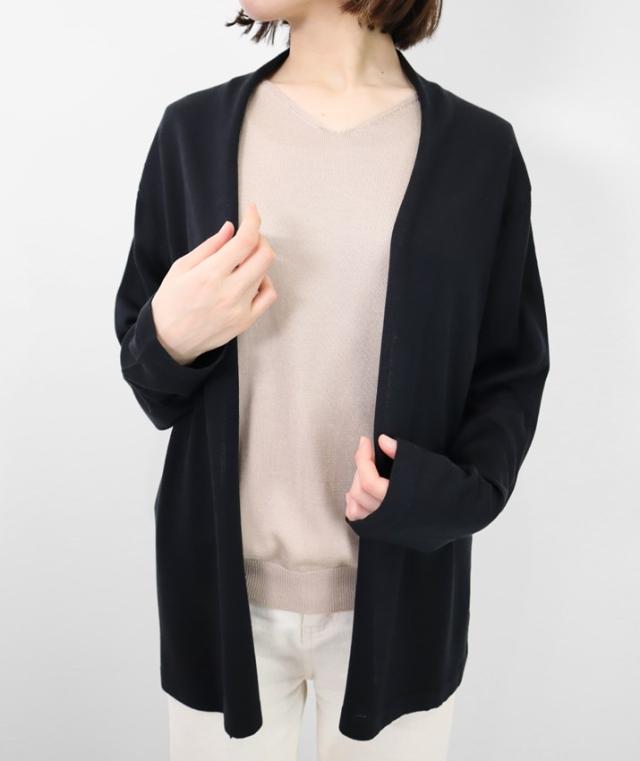 なめらかで光沢があり、しっとりとした肌触りのシルク100%のミドル丈カーディガンです。糸に特別な加工を施し、ご自宅でのお洗濯を可能にしました。 ![]() ![]() ![]() 洗濯による劣化を防ぐために糸の表面に特殊な加工がされているシルク素材を使用しています。 ![]() 編地は16ゲージのフロート編みを採用しています。しなやかで細かく均一、繊細な編み目で、一目見るだけで上質感が伝わる仕上がりに。薄手でやや透け感があります。 ![]() ![]() ![]() ![]() ゆったりとしたサイジングとヒップが隠れるミドル丈で体型カバーもお任せ。パンツにもスカートにも合わせやすい丈感だから、着回し力も抜群です。高めの後ろ襟は首元の日焼け対策にも◎ ![]() ![]() 上品な光沢でワンランク上の着こなしに シルクならではの上品な光沢感と滑らかな肌触りが魅力のカーディガン。シンプルで洗練されたデザインなので、流行に左右されず長く着られること間違いなし。 ![]() ![]() ![]() ■coordinate ウォッシャブルシルク100%リブハイネックプルオーバー 後ろ衿を立ち上げ、衿から続く前端が自然と内側に巻くデザインでふわっとやわらかいニュアンスに仕上げています。