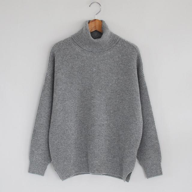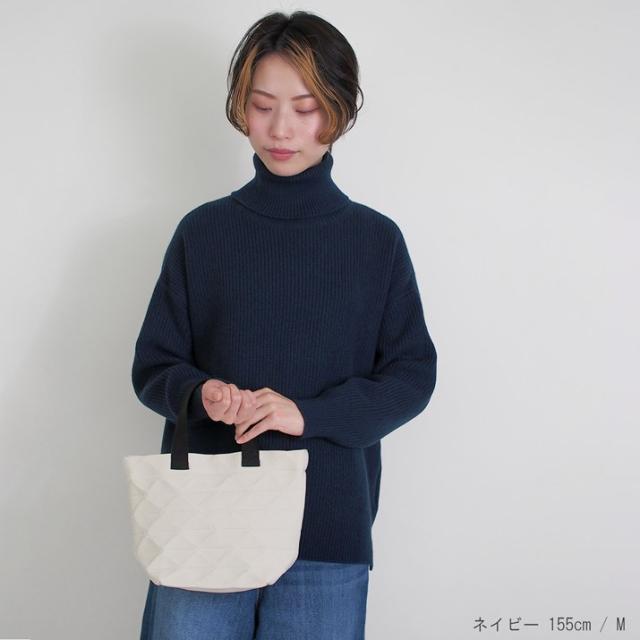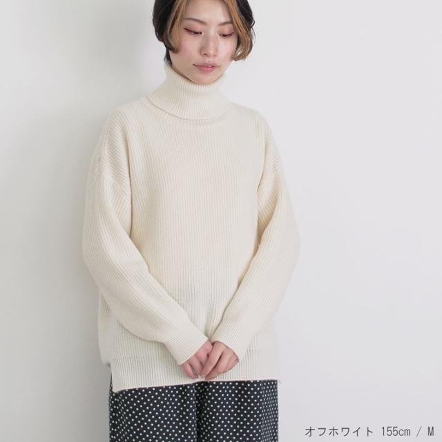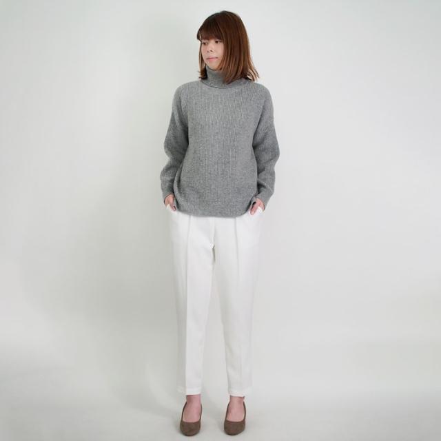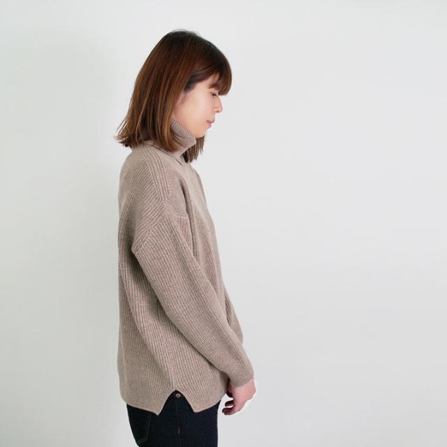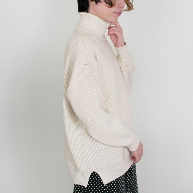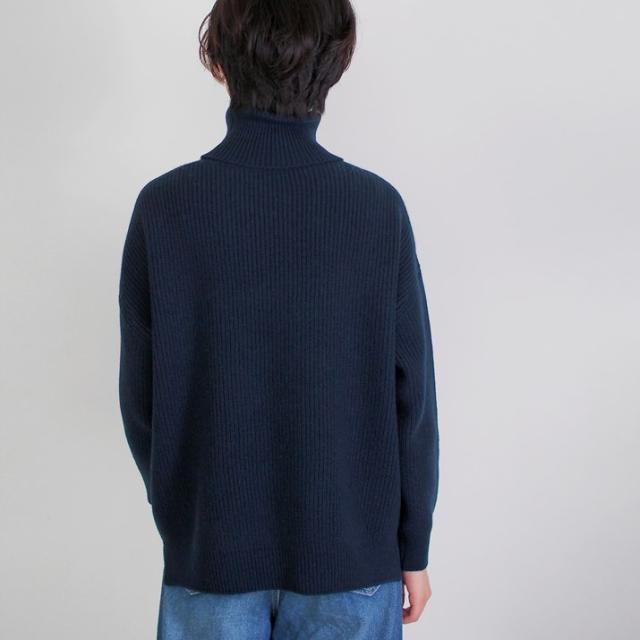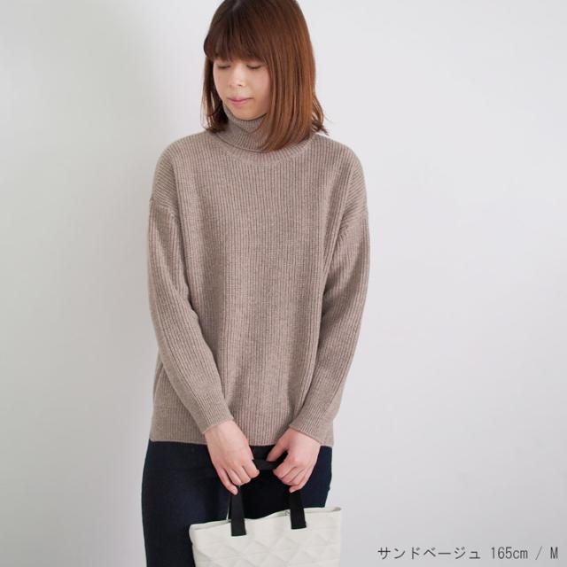 カシミヤ100%素材を使用した、軽くてあったかい畦編みのタートルネックセーターです。