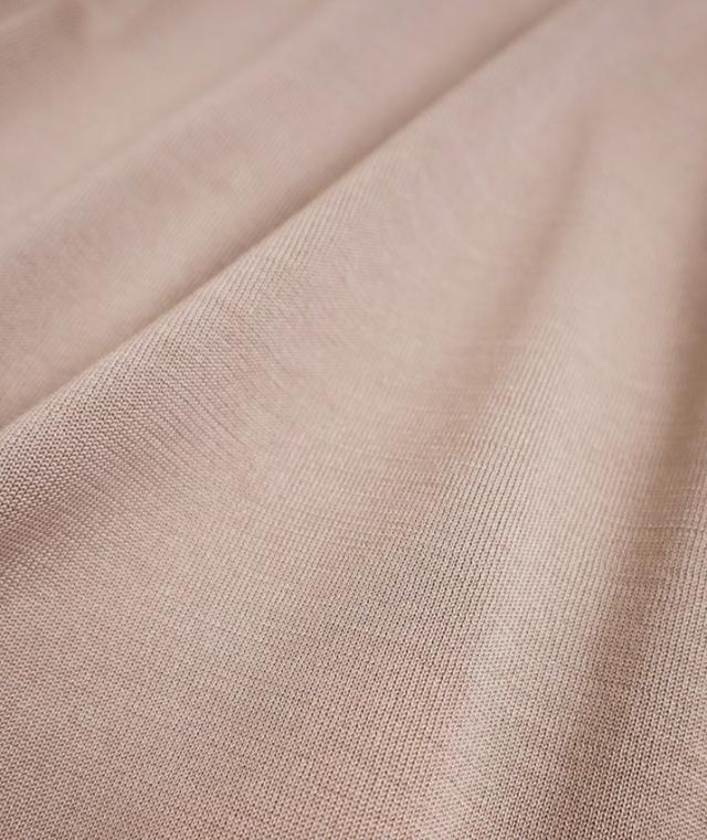 編地は14ゲージの天竺編みを採用しています。目が詰まった編地と光沢のある素材で透け感が少なく、しっかりとしたハリのある素材です。
