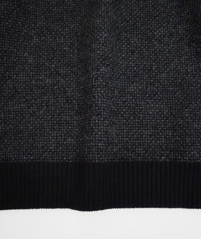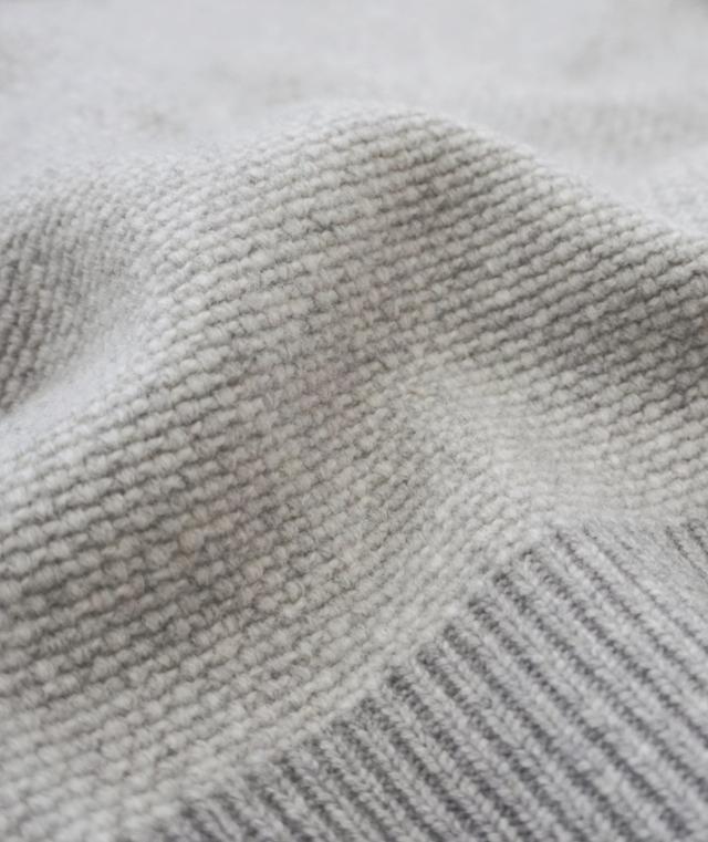編地は5ゲージのタック編みを採用しています。2色の糸を使用して凸凹のある編み方をすることで、色の変化や奥行きが感じられる仕上がりに。