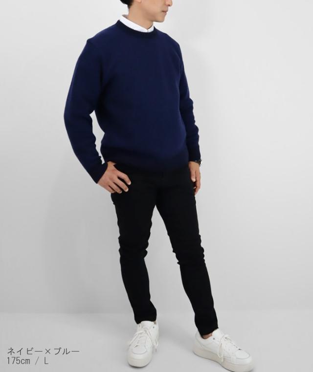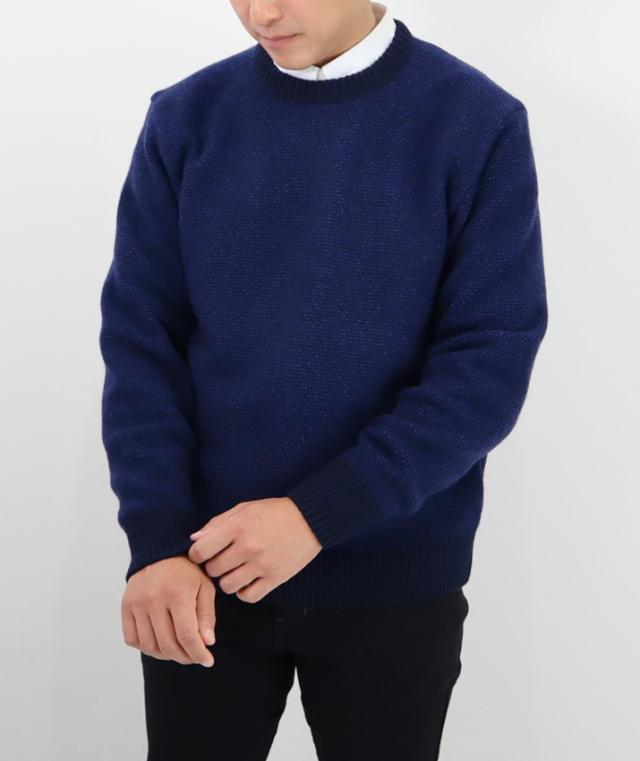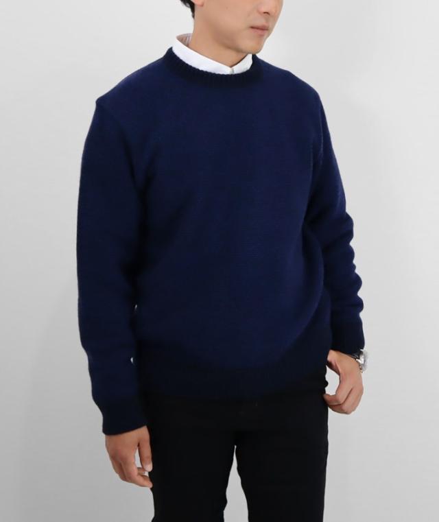 ふっくらとソフトな風合いのタスマニアラムウールを使用したメンズクルーネックセーターです。