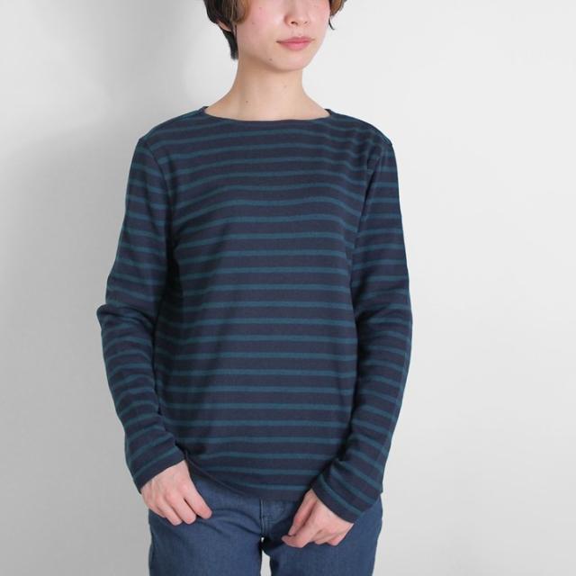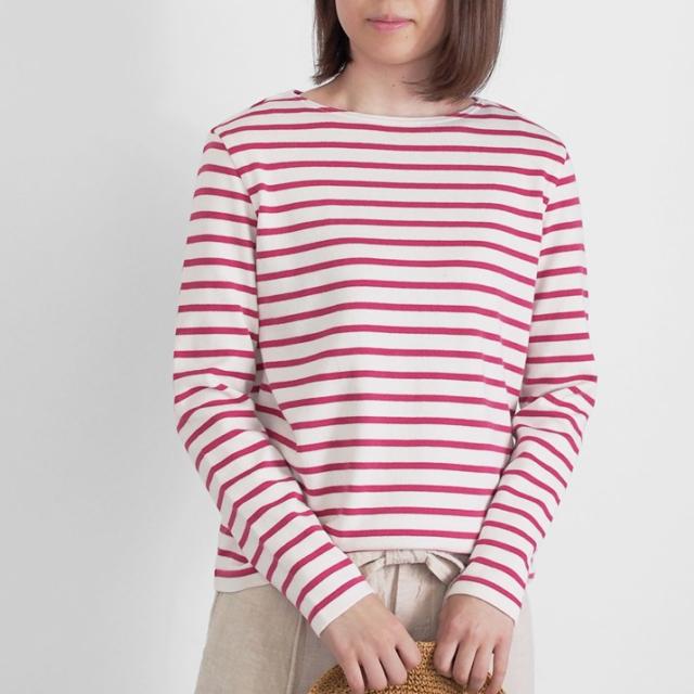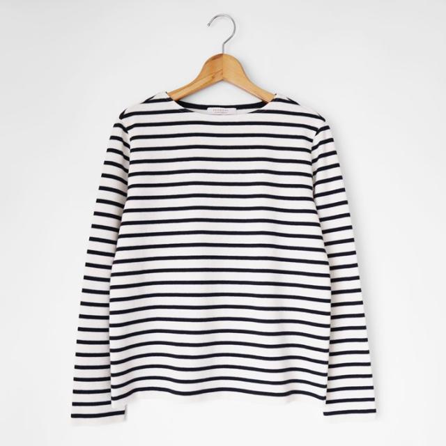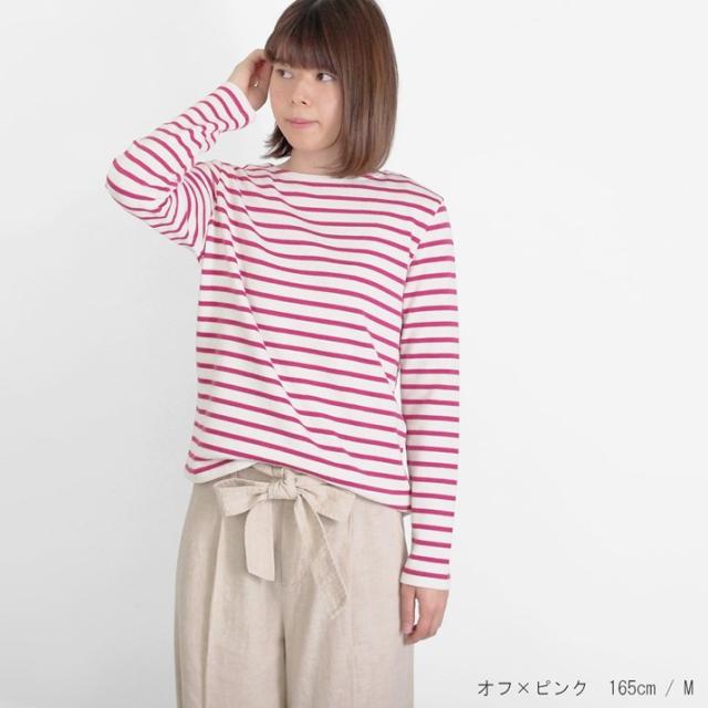 しなやかで上品なやわらかさを持つカシミヤのぬくもりと、軽く、なめらかな肌触りが自慢の超長綿の快適さ。天然繊維のメリットをあわせ持った長袖タイプのボーダー柄プルオーバーです。