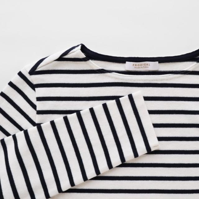 PRODIGAL ボーダー 長袖 春 ニット レディース 日本製 M L 春夏 ボーダー カットソー ボートネック シンプル 綿 カシミア 五泉ニット コットンカシミヤボーダーニット