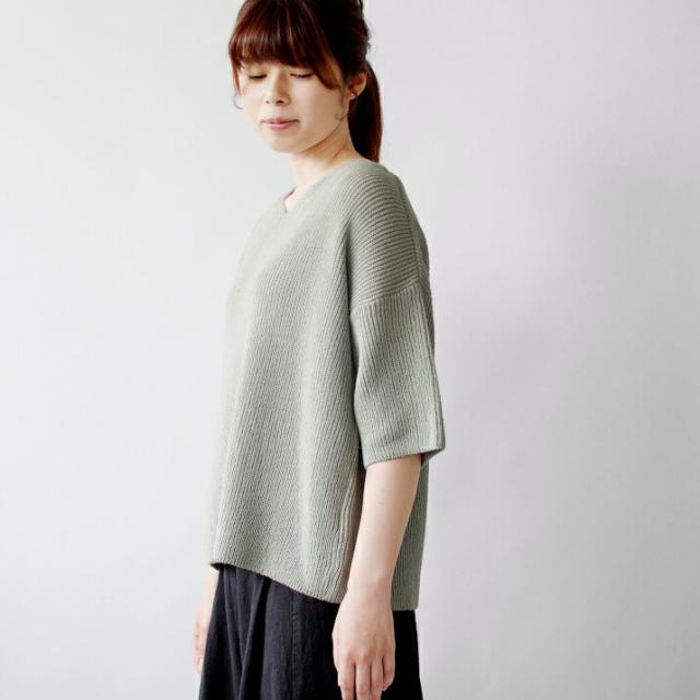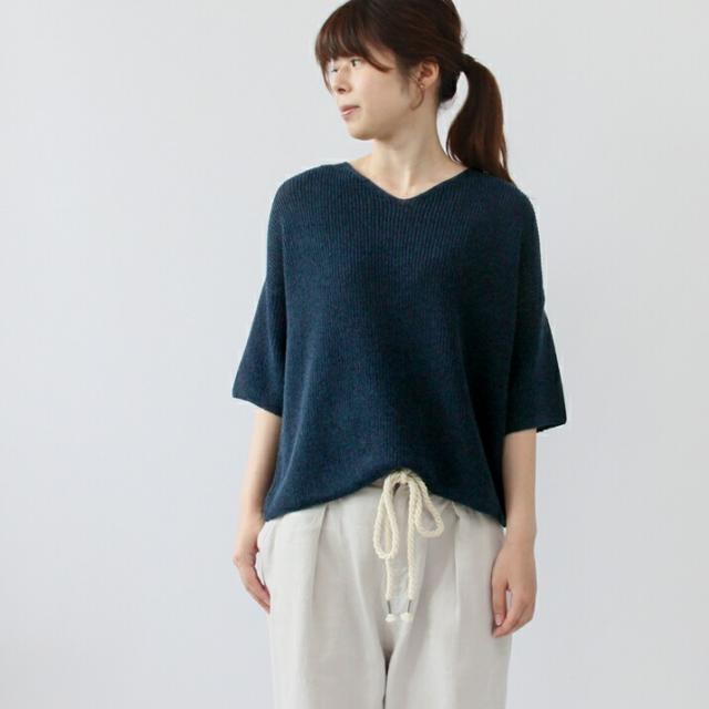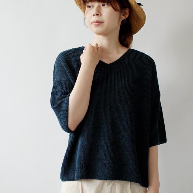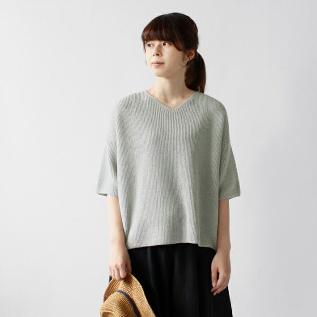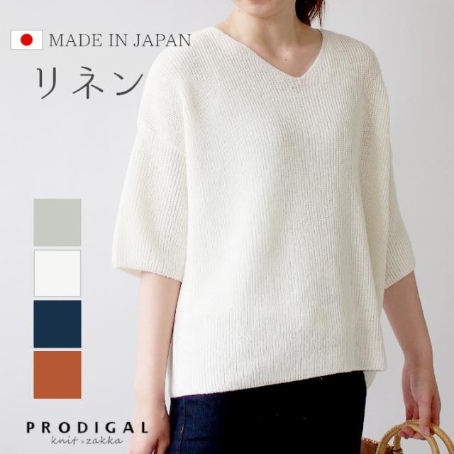 PRODIGAL 半袖 ニット レディース 夏 リネン 日本製 サマーニット vネック 畦編み ゆったり フリーサイズ 洗える 五泉ニット リネン片畦プルオーバー