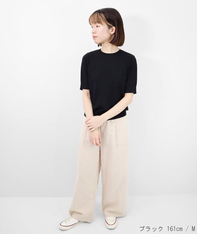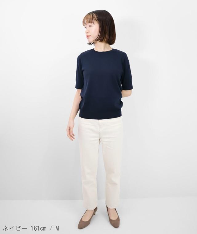 Tシャツのように気軽に着られる、さらりと柔らかい肌触りのサマーニットです。
