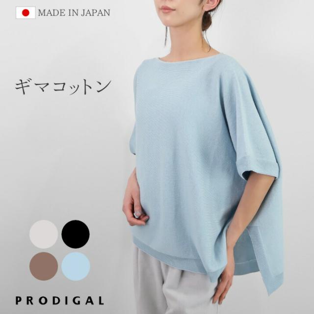 PRODIGAL サマーニット プルオーバー 五分袖 日本製 レディース 綿 フリーサイズ ニット 春 夏 ポンチョ シンプル 五泉ニット ギマコットンプルオーバー