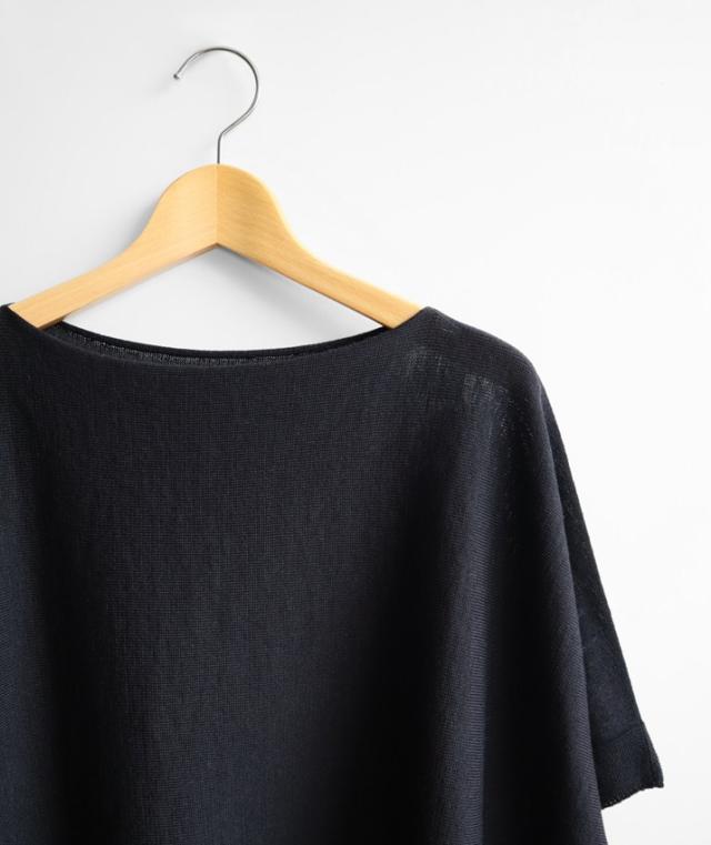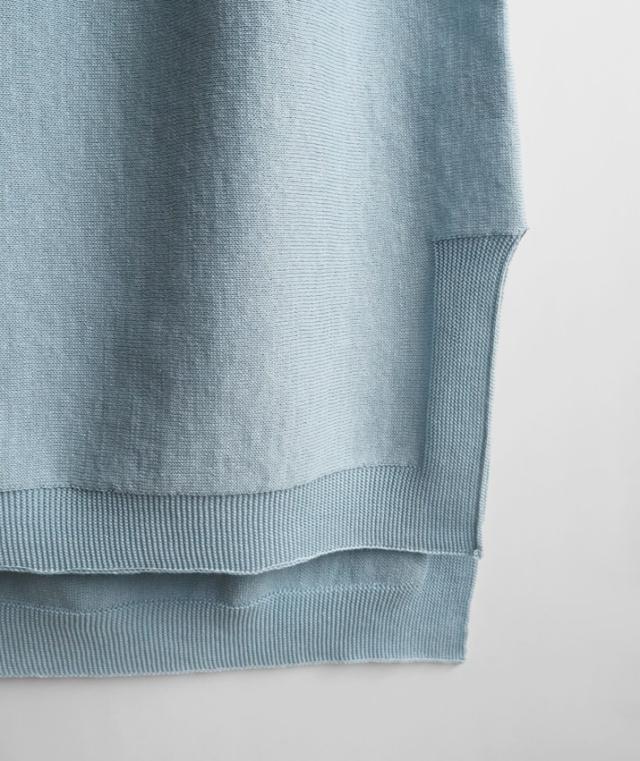 12ゲージの天竺編みを横地使いすることで、シンプルながらもニュアンスのある表情に。