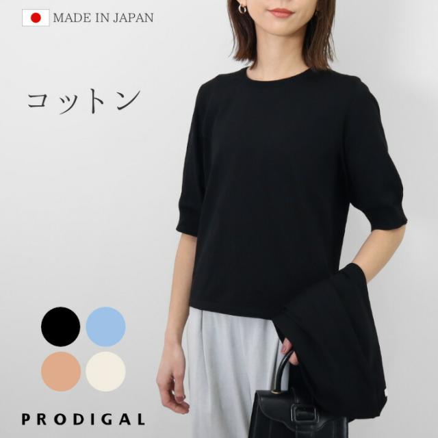 【アンサンブル対応】 PRODIGAL サマーニット レディース M L 日本製 手洗い可 半袖 ニット 夏 秋 春 トップス クルーネック tシャツ シンプル 五泉ニット ハイゲージコットンプルオーバー