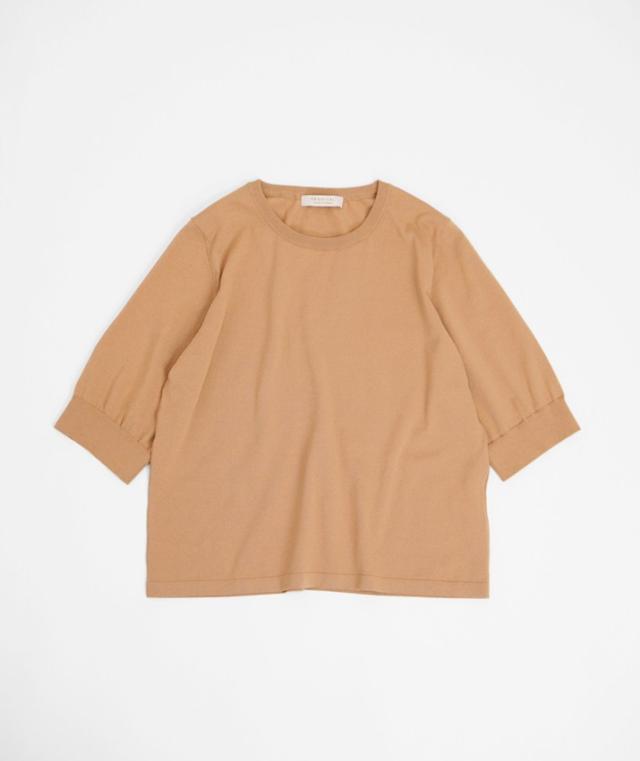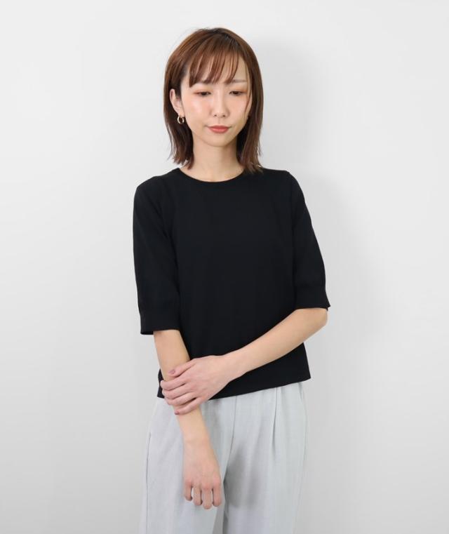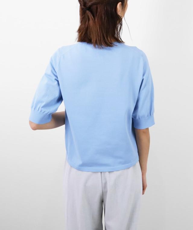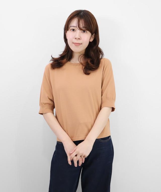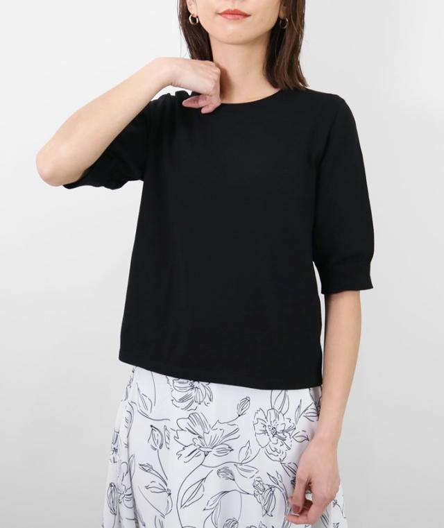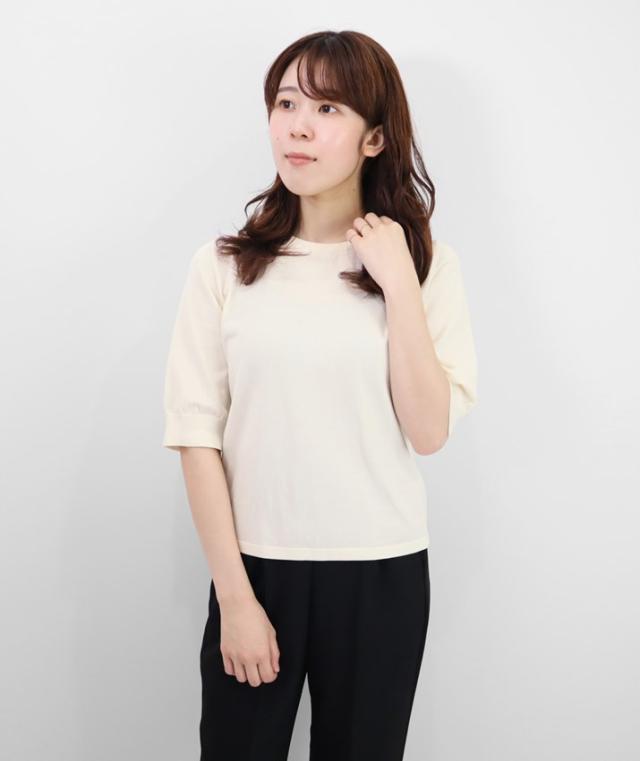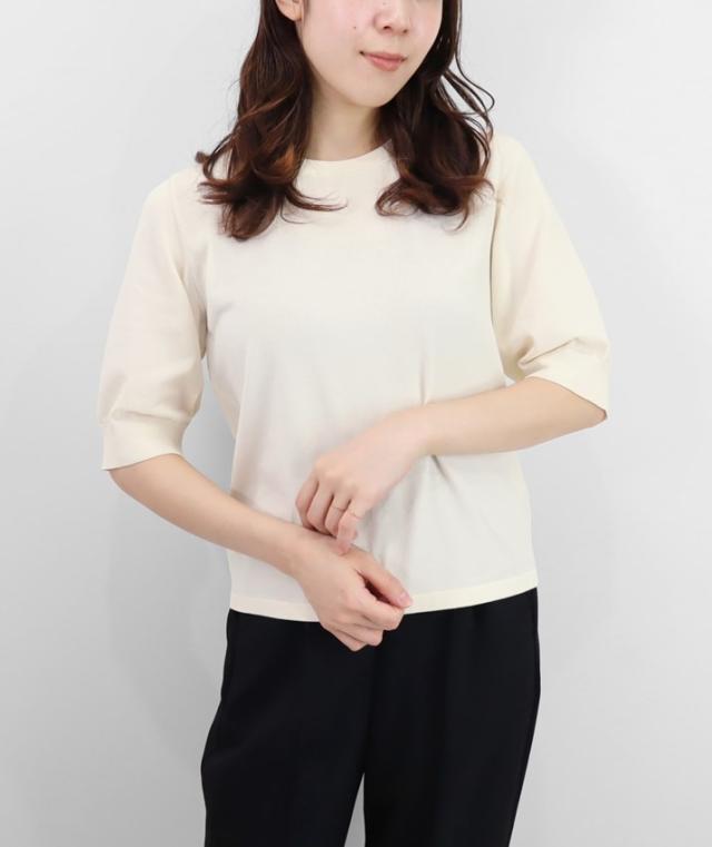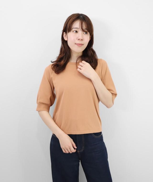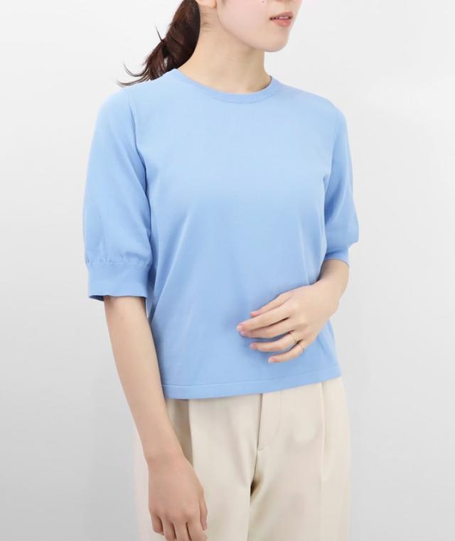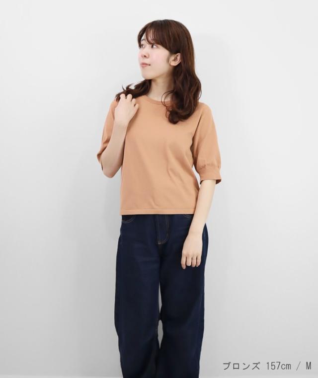 高品質 国産 五泉 ニット 綿 ニット tシャツ ショート丈 パフスリーブ ストレッチ 無地 きれいめ おしゃれ 春物 夏物 春夏 秋物