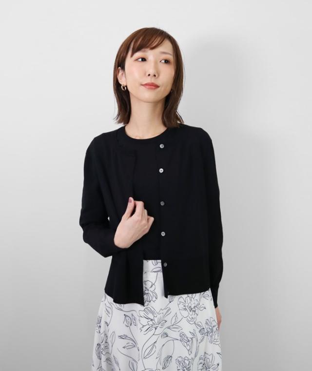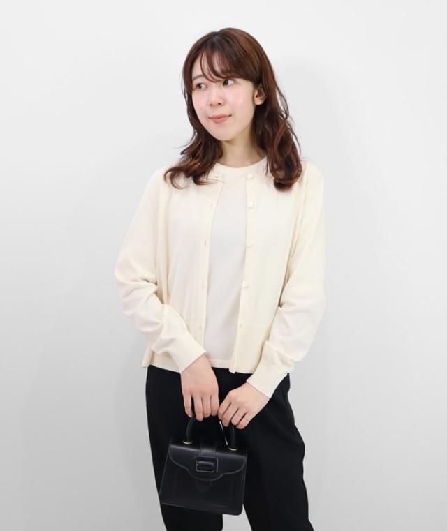 同素材の とセットで着ていただけます。軽やかで羽織りやすく、季節の変わり目に重宝するおすすめのコーディネートです。