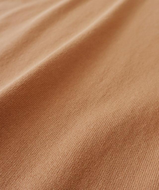 編地は16ゲージの天竺編みを採用しています。ハイゲージの上品な薄さを活かしながら、ポリエステルのストレッチ性によって透けにくく、適度なハリのある風合いに仕上げました。