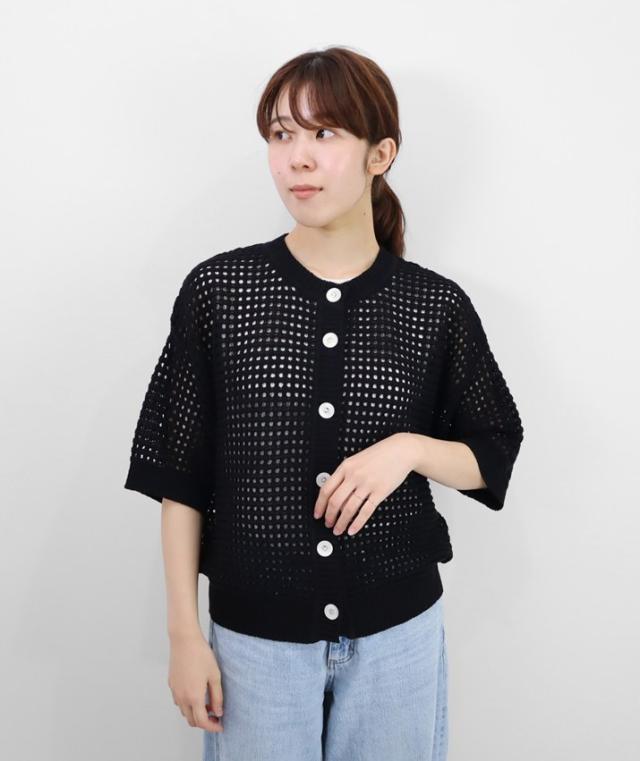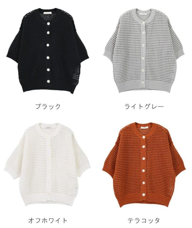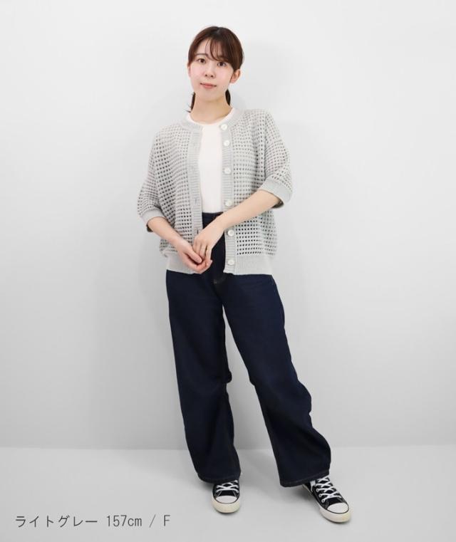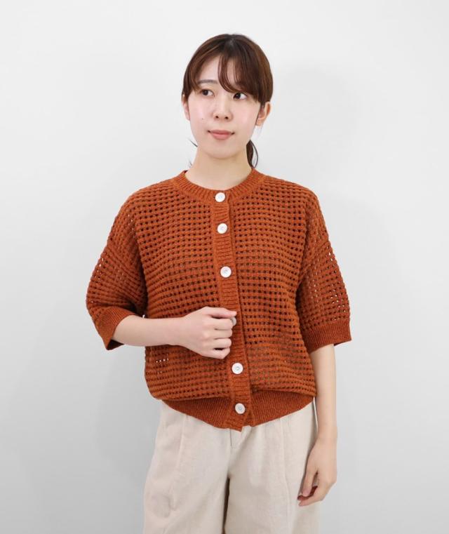PRODIGAL 半袖 カーディガン ニット レディース 夏 リネン 日本製 サマーニット クルーネック ゆったり フリーサイズ 洗える 五泉ニット リネンメッシュ編みカーディガン
