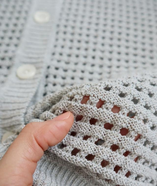 編地は7ゲージのメッシュ編み。肌との接地面が少なく、通気性がよいため涼しく着られます。