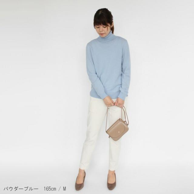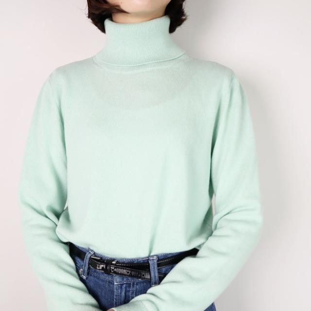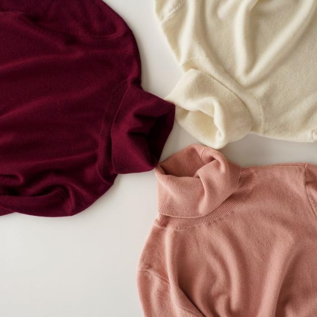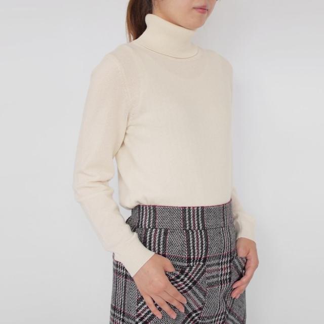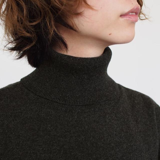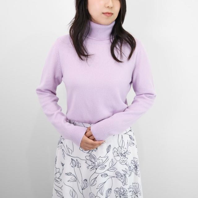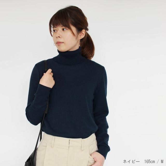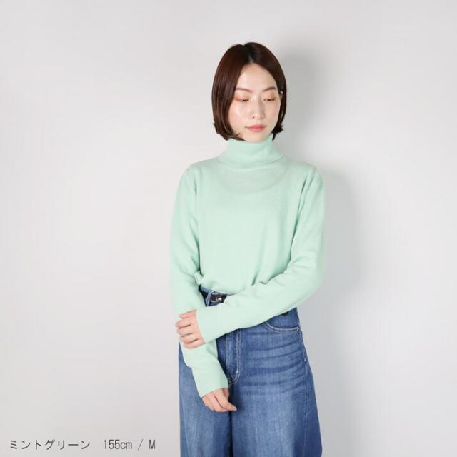 カシミヤ100%素材を使用した、軽くてあったかいタートルネックセーターです。