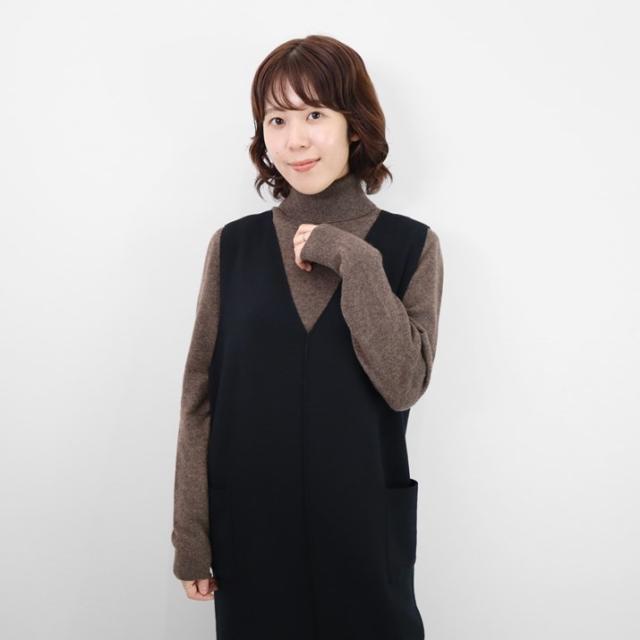 ベーシックな形だから、そのまま着るのはもちろん、羽織りやワンピースとの重ね着にも使えて、幅広い着こなしができる1枚です。
