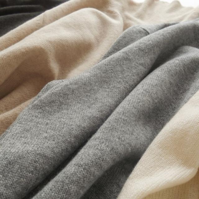 カシミヤ100%の気持ちいい肌触りと軽い着心地は、一度知ると手放せなくなります。