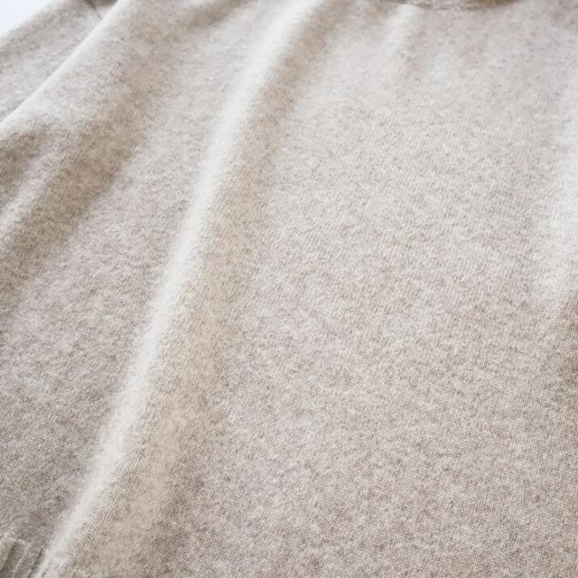 首元、袖口、裾は3×3リブという編み方を採用しています。 締め付けの少ないすとんとしたシルエットで、カジュアルな雰囲気に仕上げました。