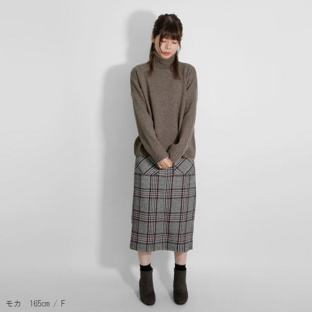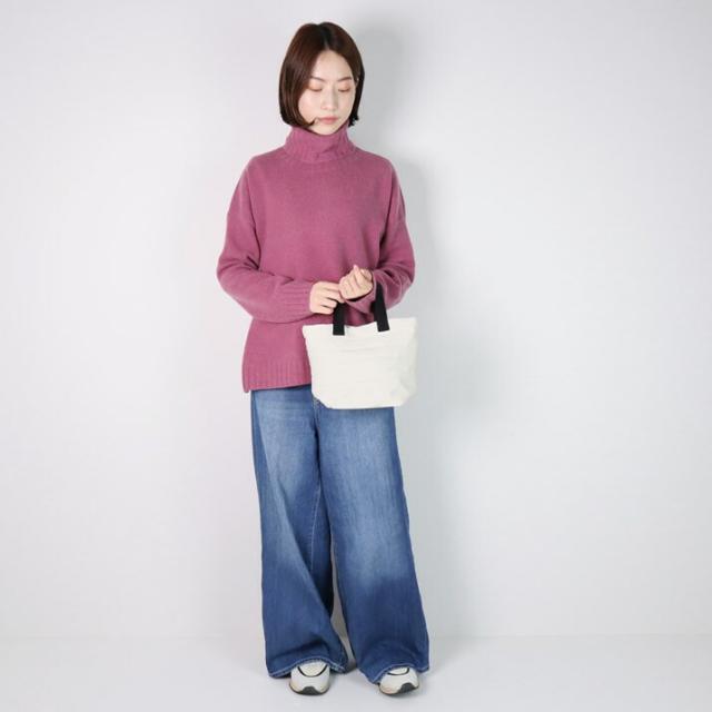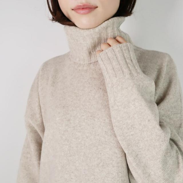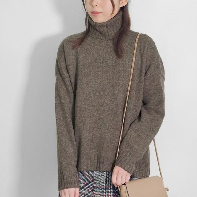 シンプルなデザインだから合わせるボトムや小物次第で、カジュアルにもきれいめにも着こなせる万能アイテム。タートルネックがアクセントになり、様々なアウターとの合わせが楽しめます。