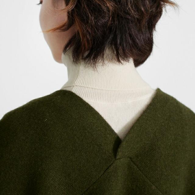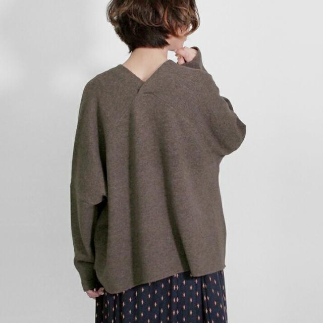 肩を落としたデザインで、バックの綺麗なドレープがポイント。後ろがVネックになっているので抜き襟でゆるっと着るのもおすすめです。