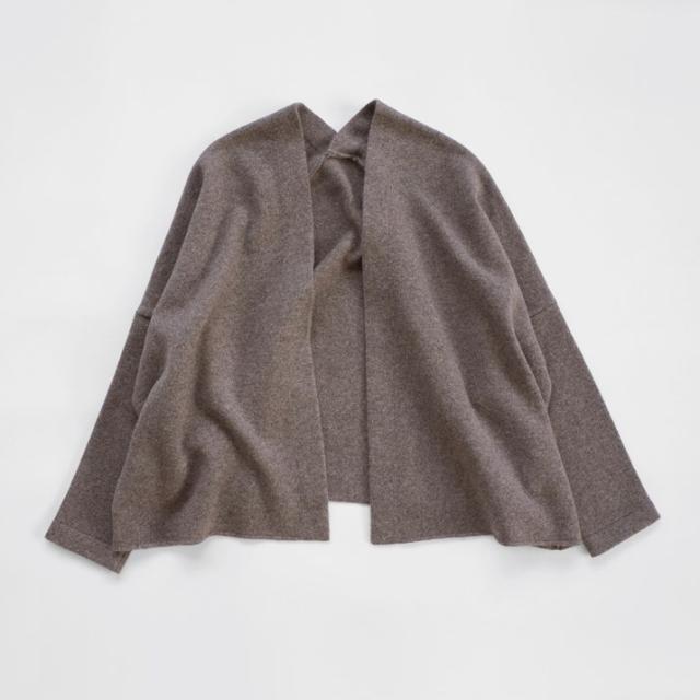 シェットランドタイプのバルキー性のあるウールに、ソフトなカシミヤをブレンドした素材でつくったショート丈のカーディガン。