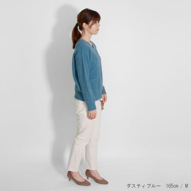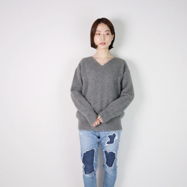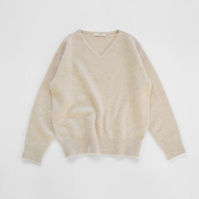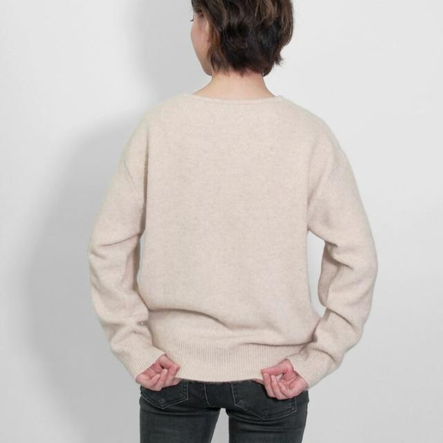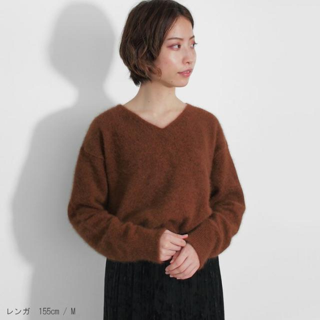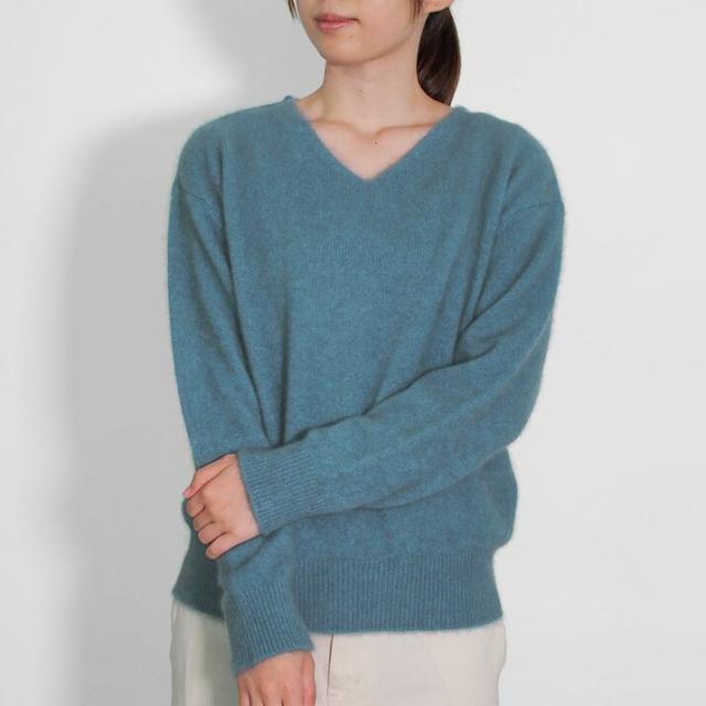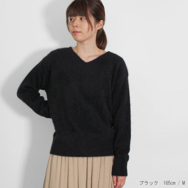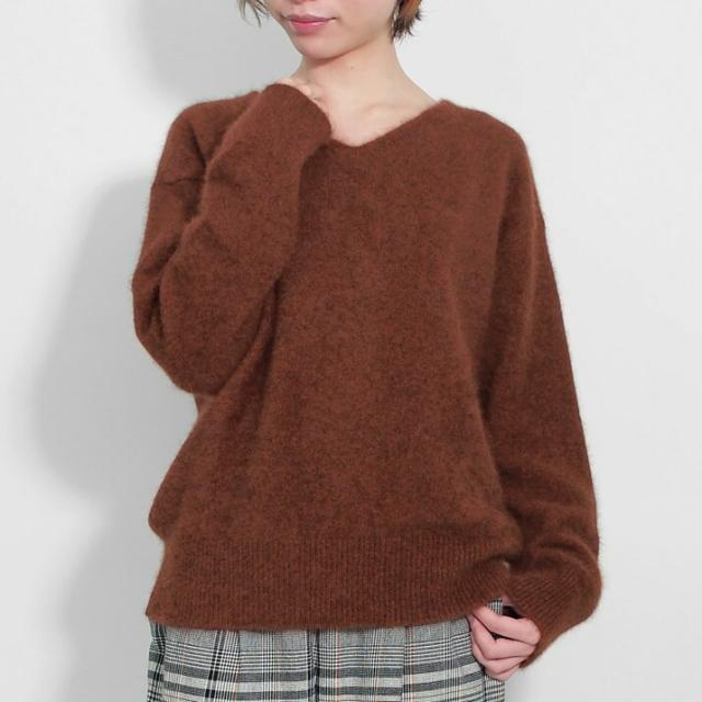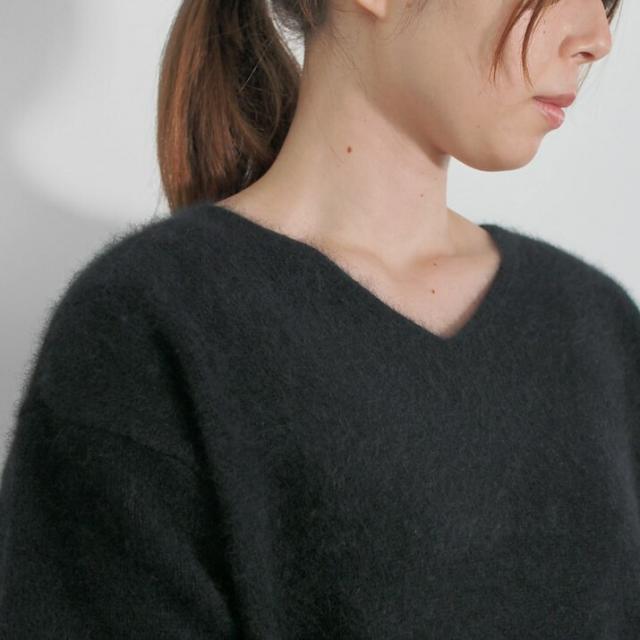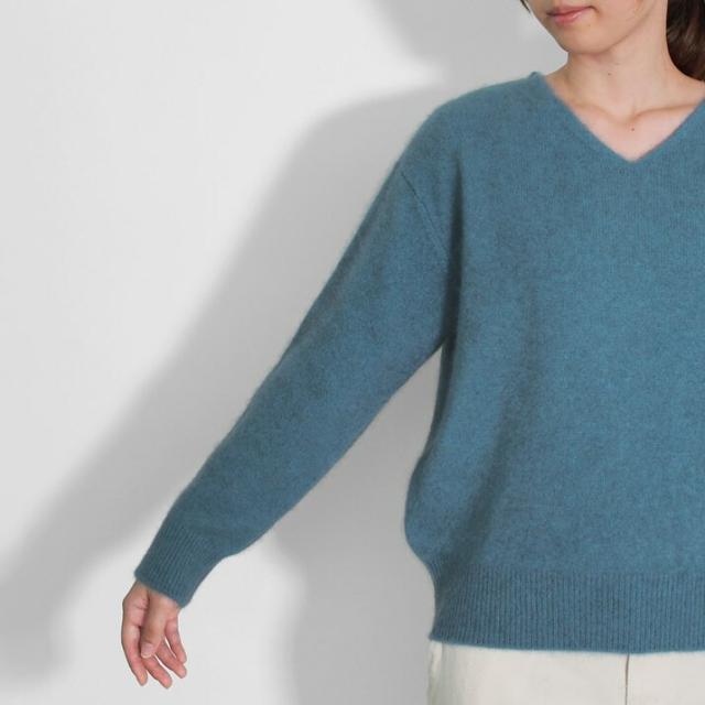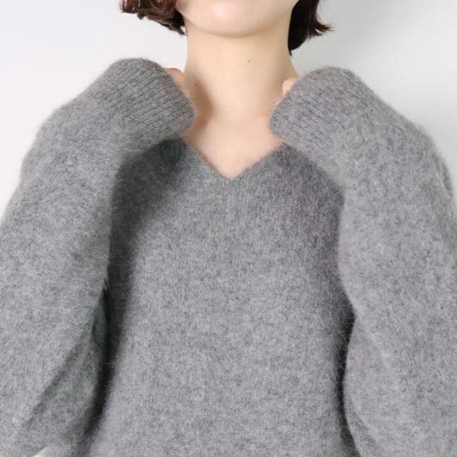 毛足が長く、ふんわりと高級感のあるラクーン素材でつくったVネックセーターです。