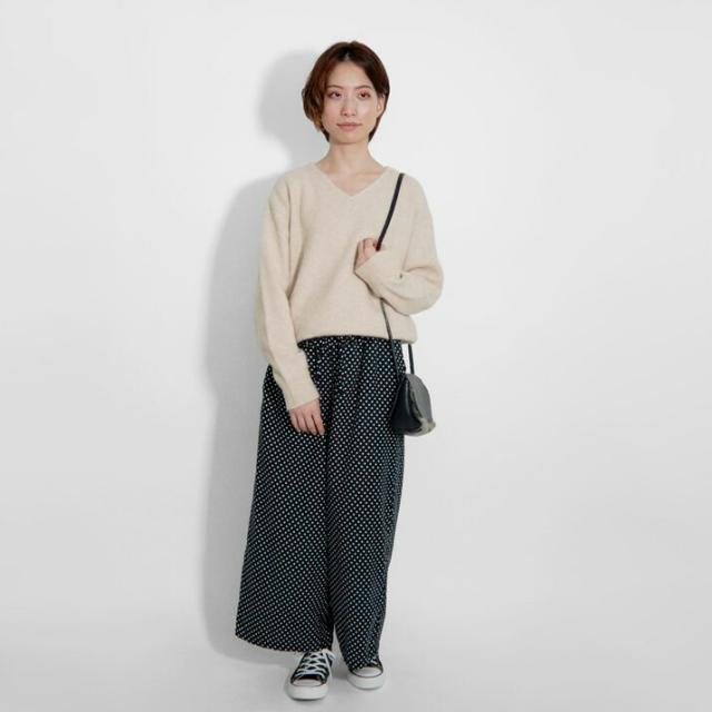いつものボトムと合わせるだけで、シンプルな着こなしでありながらも女性らしい優しい雰囲気を演出してくれます。
