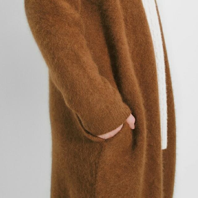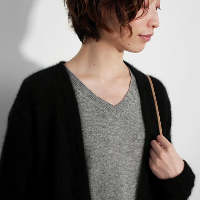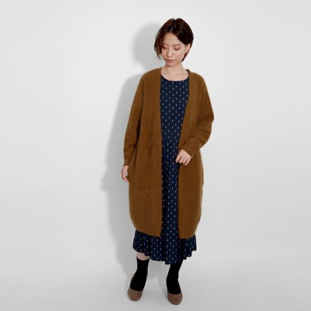 毛足が長く、ふんわりと高級感のあるラクーン素材でつくったロング丈のカーディガンです。
