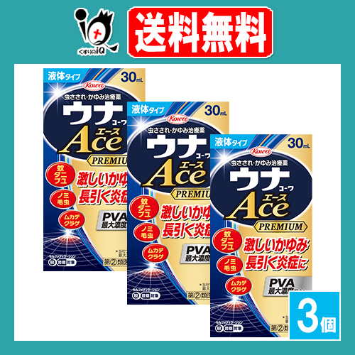 【指定第2類医薬品】★ウナコーワエースプレミアムL 30mL×3個セット【Kowa 興和】虫さされ 虫刺され かゆみ 湿疹 かぶれ 皮膚炎 あせも じんましん 液 PVA配合