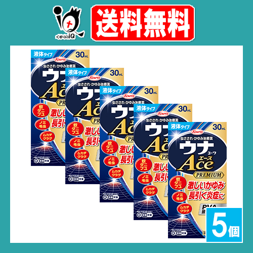【指定第2類医薬品】★ウナコーワエースプレミアムL 30mL×5個セット【Kowa 興和】虫さされ 虫刺され かゆみ 湿疹 かぶれ 皮膚炎 あせも じんましん 液 PVA配合