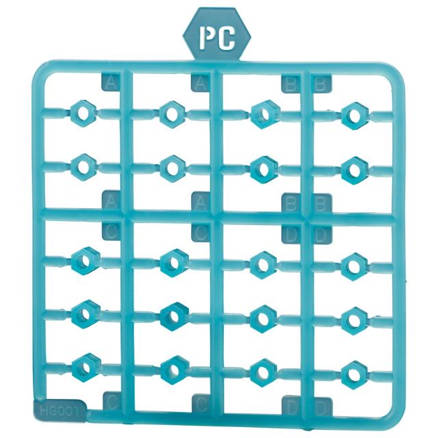 ◇成型色を変更したキット付属のヘキサグラムと同形状のヘキサグラムPCランナーを4枚セットで封入、A×16個、B×16個、C×24個 D×24個と余裕を持った数量です。