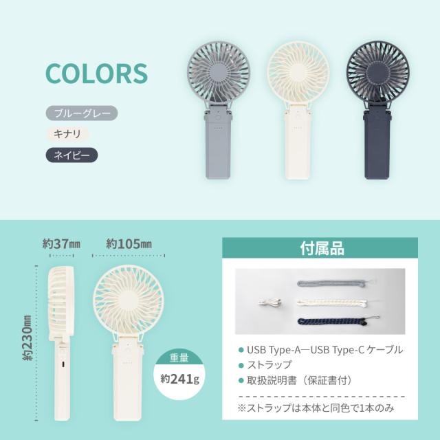 ポータブルファン モバイルバッテリー機能搭載 5段階風量調節 約20時間使用可能 しっかりとした風 おやすみモード搭載