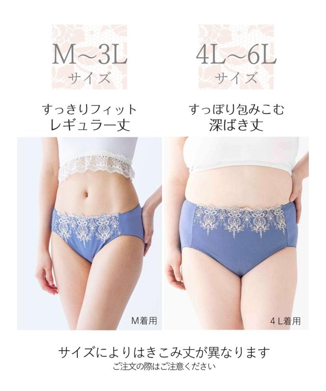 ショーツ 大きいサイズ レディース 綿100% 刺しゅう レース 4枚組 サイズ別はきこみ丈 春 夏 秋 冬 女性 インナー パンツ | 4L/5L/6L | ニッセン nissen