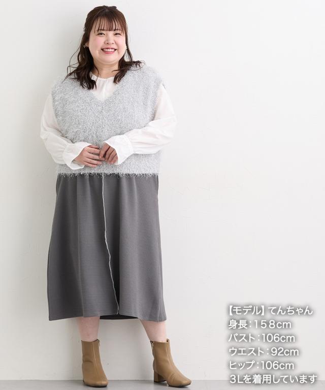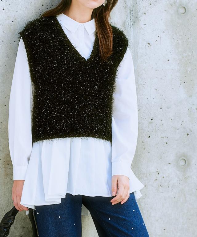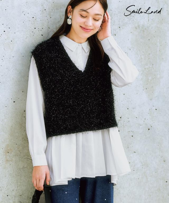 ベスト レディース コンパクト丈ラメシャギー ニット 重ね着 レイヤード | L/LL/3L | ニッセン nissen