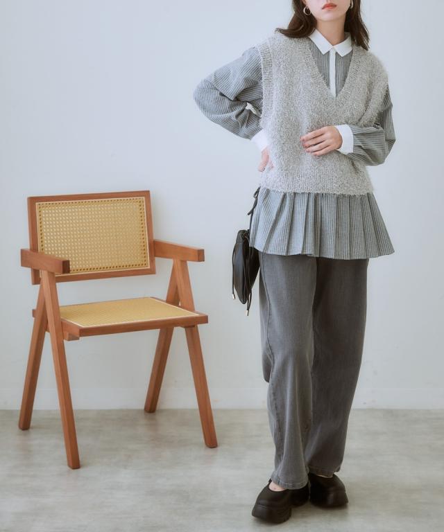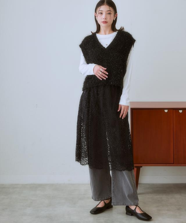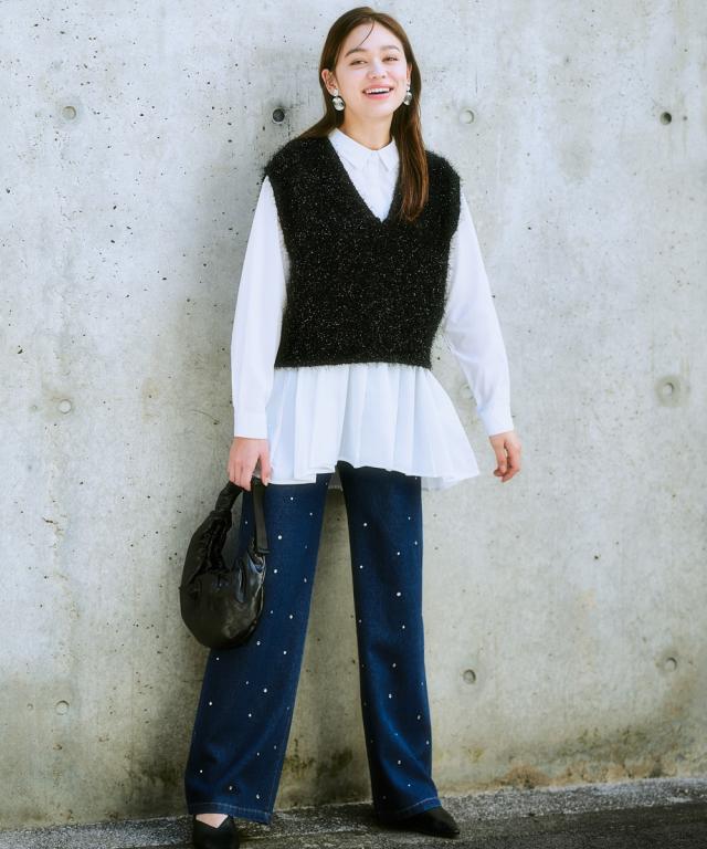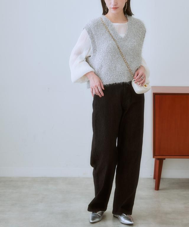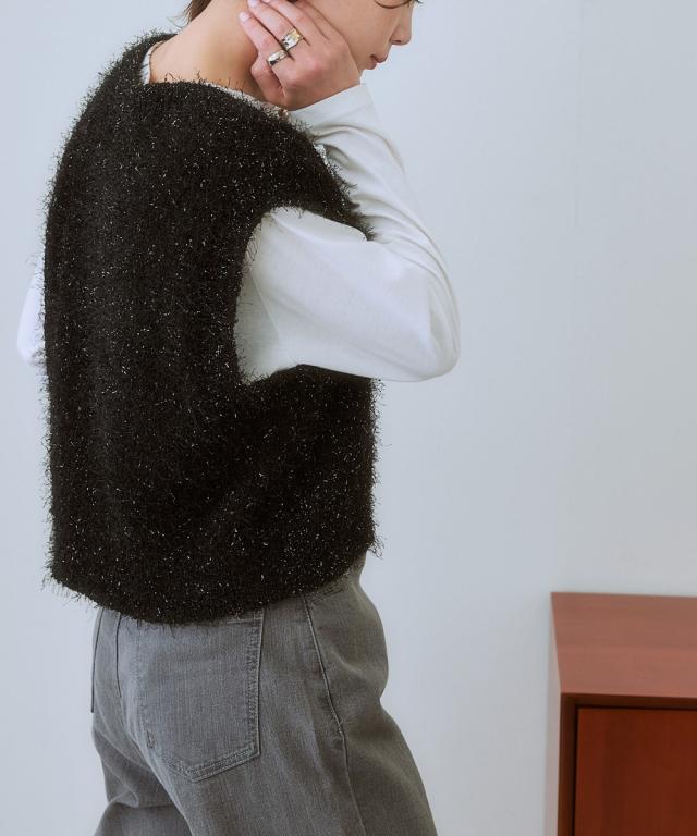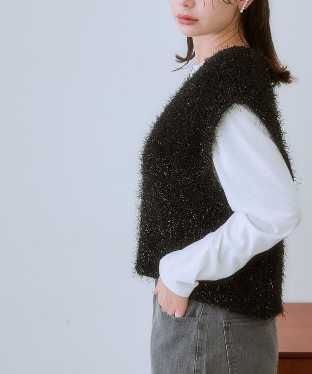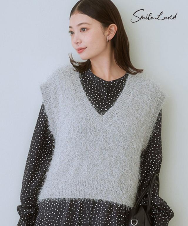 ふわふわもこもこが可愛いラメ入りニットベスト まるで雲の上を歩いているような、ふわふわもこもこのニットベスト。 ラメ糸を贅沢に使用した、華やかなデザインが目を引く一着です。 カジュアルだけど、どこか大人っぽい雰囲気も漂う、着回し力抜群のアイテムです。 ■デザイン カジュアルスタイルからきれいめスタイルまで、幅広いコーデに合わせられます。 コンパクトな丈をプラス1点することで全体のバランスが整います。 ■素材 **柔らかな肌触りで、着心地抜群!** 優しい肌触りで、着心地抜群のニットベストは、デイリーユースにぴったり。 ゆったりとしたシルエットで、体のラインを拾わず、体型カバーも叶えます。 ■おすすめのスタイリング コーデのアクセントにぴったり!** シンプルなトップスに合わせるだけで、コーデに華やかさをプラス。 ワンピースの上に羽織って、レイヤードスタイルを楽しむのもおすすめです。 **様々なシーンで活躍!** デートや女子会、お出かけなど、様々なシーンで活躍してくれる、万能アイテムです。