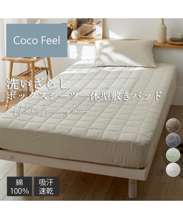 綿100%洗いざらしボックスシーツ一体型敷きパッド(Coco Feel)